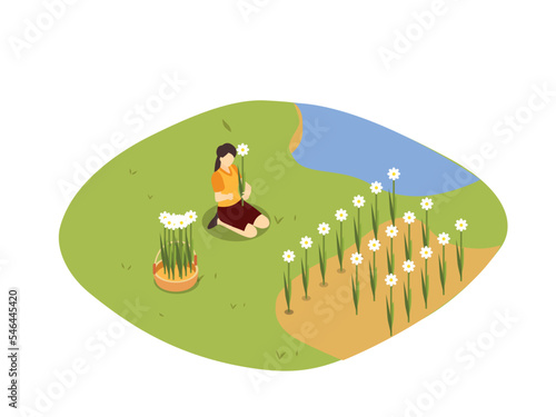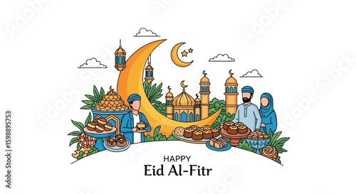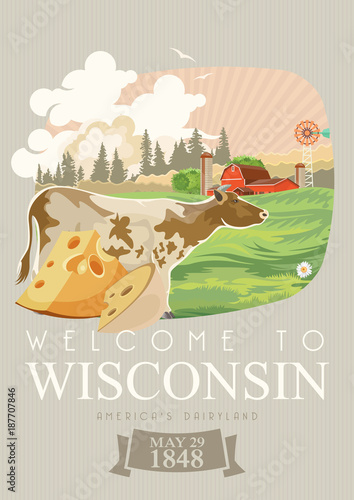 Rider in cowboy hat tries dressage wild horse in American Rodeo arena. Vector illustration in flat design style