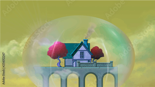 Amsterdam city in Holland travel landscape vector illustration in paper cut craft art origami style. Panorama of building architecture cityscape background with flower blossom, mill and bicycle