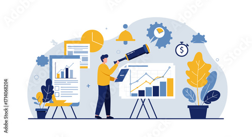 Ferris wheel, male and female characters, vector illustration. Amusement park attractions composition for web banner, website page etc.