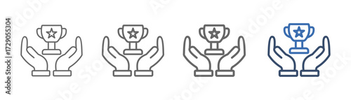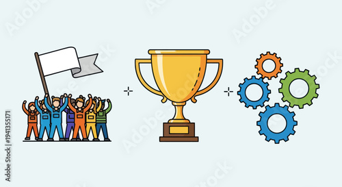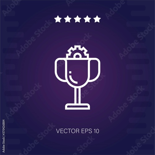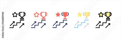 Analysis word ladder with trophy award cup on top. Vector realistic illustration. Business concept for web, poster, banner.