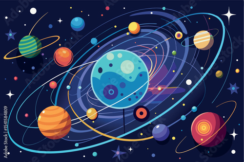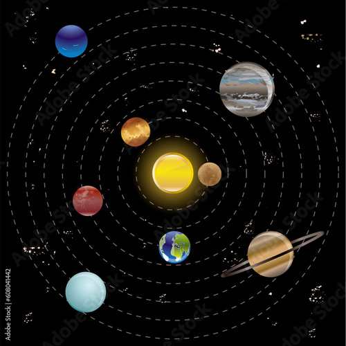 Solar system models vector infographic, education diagram, poster. Ancient or geocentric and modern or heliocentric models of Universe with Earth and the Sun in the center.