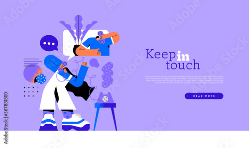 Huge cat getting hairstyle, micro male and female characters barbers combing cute kitten, vector illustration. Pet grooming services, animal care composition for web banner, website page etc.