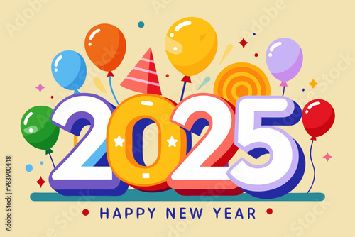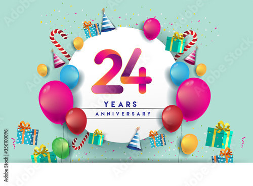 5th anniversary invitation greeting card vector template. Party celebration items such as balloons, gift boxes, confetti and layered paper cut style numerals from 0 to 9.