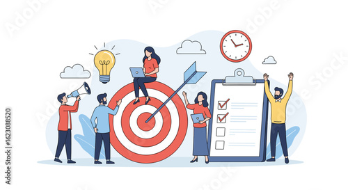 Anti 5g activists with placards protesting against new high speed cell towers, flat vector isometric illustration. Demonstration against 5G mobile technology dangerous to public health, environment.