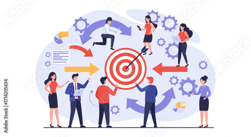 Anti 5g activists with placards protesting against new high speed cell towers, flat vector isometric illustration. Demonstration against 5G mobile technology dangerous to public health, environment.