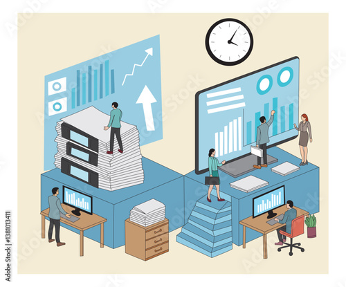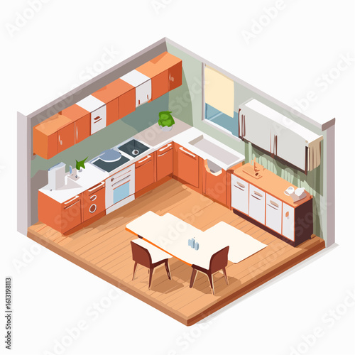 Apartment construction vector flat isometric poster, banner with excavation, columns casting, floor installation, walls building design elements and copy space.