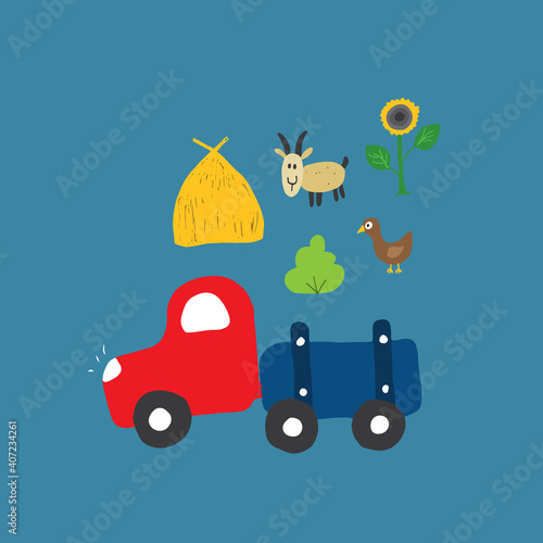 Farmer or gardener loading truck with baskets full of apples, vector illustration. Apple fruit harvesting concept for web banner, website page etc.