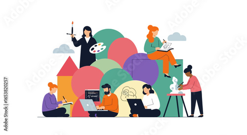 People farmers picking red ripe apples, vector illustration. Harvesting, apple picking season concept for web banner, website page etc.