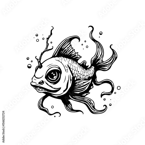 Vector layered paper cut style glass aquarium with underwater plants, exotic fish and stones. Home fishbowl with beautiful marine pet fish in paper art craft style.