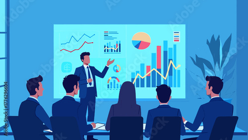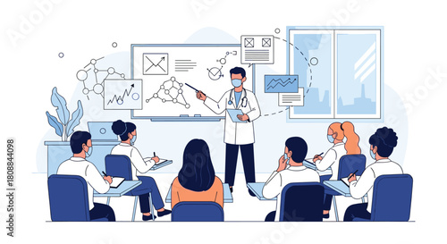 Arab people listening to lecture, flat vector isometric illustration. International business seminar, workshop or training.
