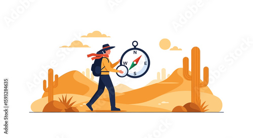 Micro male characters archaeologists working at archaeological site with big magnifying glass, shovel and pickaxe, human remains in sand, vector illustration. Archaeological excavations concept.