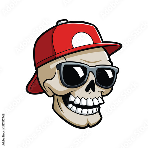 Micro male and female characters archaeologists cleaning huge human skull from soil, vector illustration. Ancient artifacts concept for web banner, website page etc.