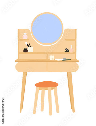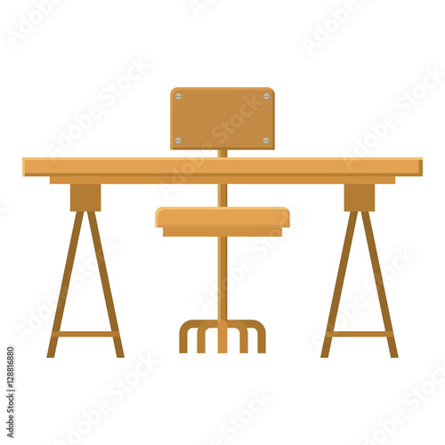 Architect desk with city new buildings model and laptop vector icon isolated on white background.