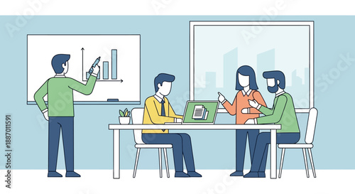 Professional architects, engineers working on architecture project of modern housing complex, flat vector illustration. Building industry, construction development.