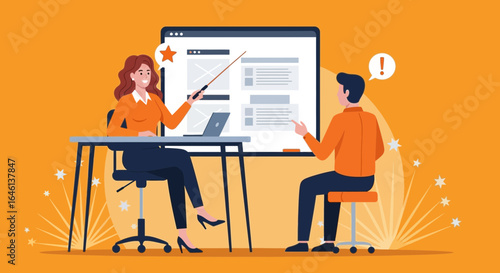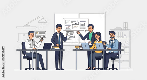 Professional architects, engineers working on architecture project of modern housing complex, flat vector illustration. Building industry, construction development.