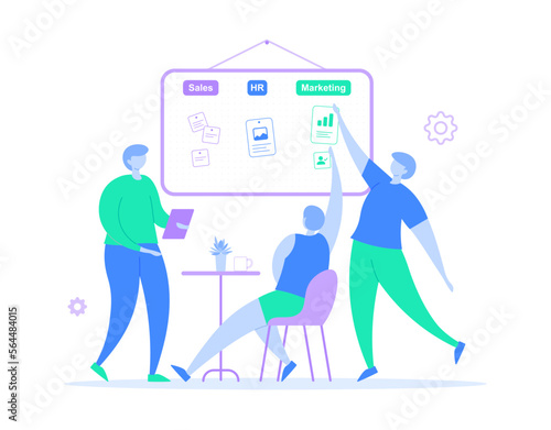 Art gallery, museum exhibition, flat vector illustration. People viewing modern abstract art paintings on the wall. Cultural event.