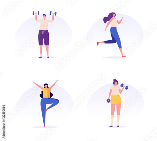 Athletes male characters jumping over horizontal bar, running and passing relay baton, vector illustration. Athletics high jump, relay race track and field sport events concept.