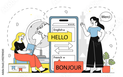 ATM machine vector flat illustration. Male and female characters withdrawing cash, performing other financial transactions such as cash deposits, transfer funds using ATM, automatic banking machine.