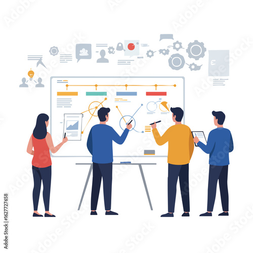 Auction scene with auctioneer opening bidding calling out starting price, bidders making bids, flat vector illustration. Auction and bidding concept.