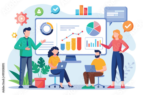 Auction scene with auctioneer opening bidding calling out starting price, bidders making bids, flat vector illustration. Auction and bidding concept.