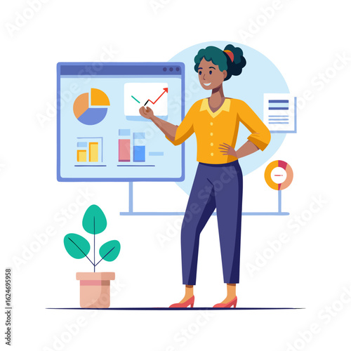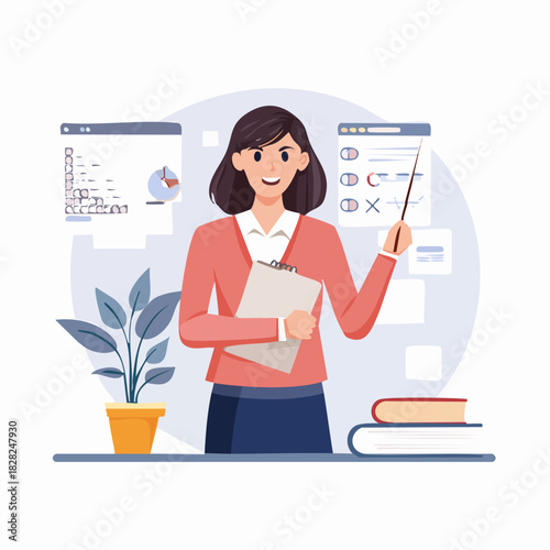 Female characters auctioneer selling vintage vase from computer and buyer making bids, flat vector illustration. Online auction. Internet bidding.