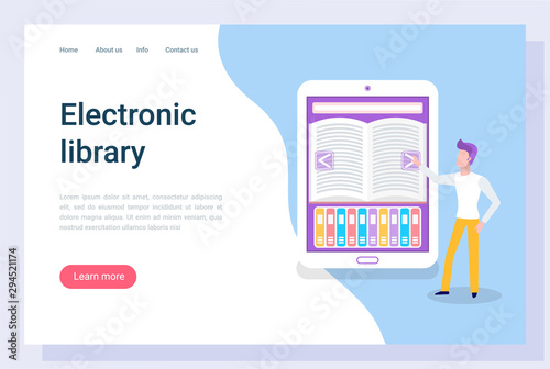 Audio media and books vector website template, web page and landing page design for website and mobile site development. People in headphones listening to audiobooks from mobile device.