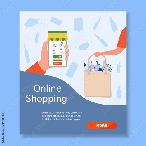 Audiobooks online landing page website template. Vector isometric illustration of man standing in front of smartphone with books and headphones. Books online concept.