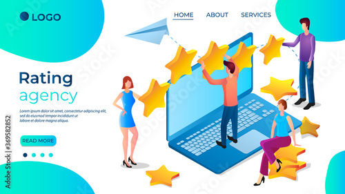Augmented reality landing page website template. Vector isometric illustration of man placing 3D models of kitchen cabinets to see their ideal placement using smartphone with augmented reality app.