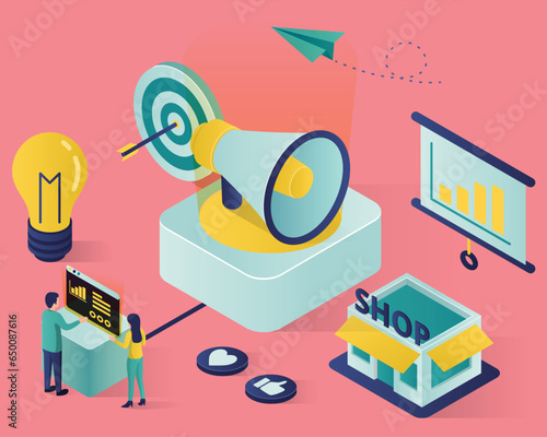 Automated mobile app testing, flat vector isometric illustration. Debugging, quality assurance, mobile test automation.