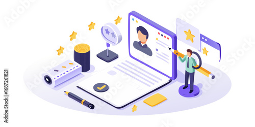 Automated testing software, flat vector isometric illustration. Software tester, debugging, quality assurance, automation.