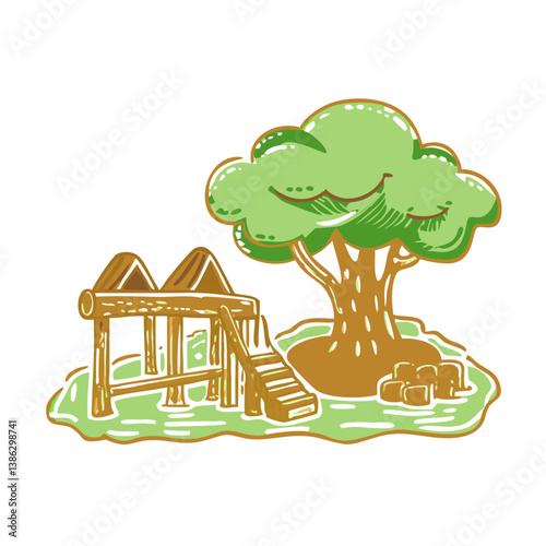 Autumn season. Man gardener, farmer picking ripe pears from tree in garden, flat vector illustration. Gardening, agriculture, autumn fruit harvest season.