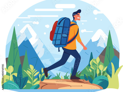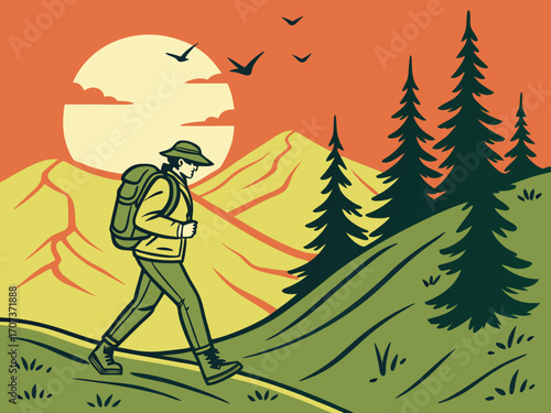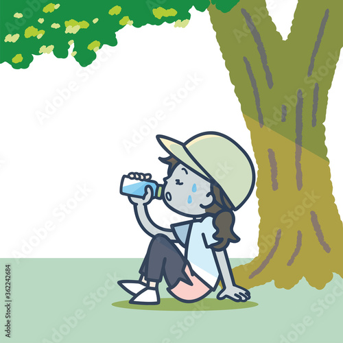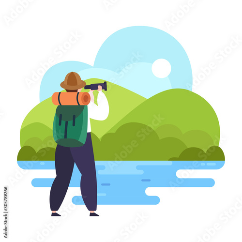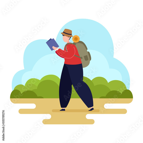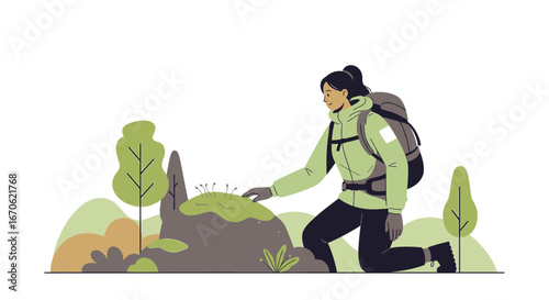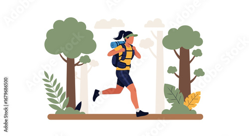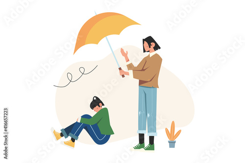 Autumn season. Girl under umbrella walking in the rain, flat vector illustration. Young woman wearing coat and rubber boots walking along the street. Fall scenery. Rainy autumn weather.