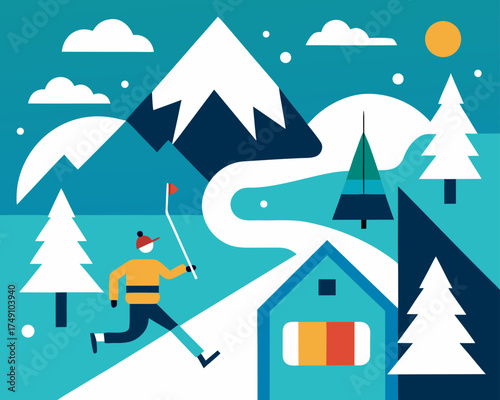 Avalanche vector. Snow slide down from mountain icon. Natural snowslide disaster landscape illustration isolated on white background