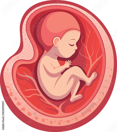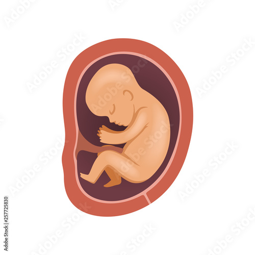 Baby in the womb breech presentation vector icon isolated on white background.