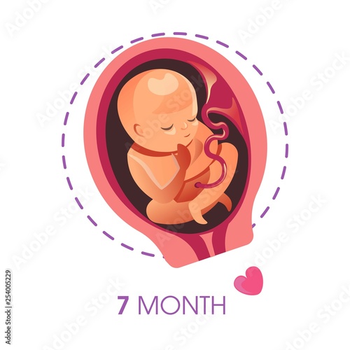 Baby in the womb six months pregnant vector icon isolated on white background.