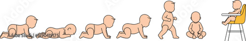 Baby wearing diaper crawling vector icon isolated on white background