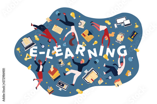 Backpack with school supplies flying out of it, vector illustration in paper art style. Back to school concept.