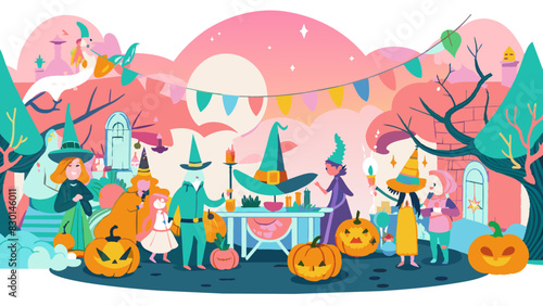Back to school vector illustration with education items mascot. Happy smiling scissors, paints, paintbrush, ruler, alarm-clock, textbook, schoolbag, pen and pencil character