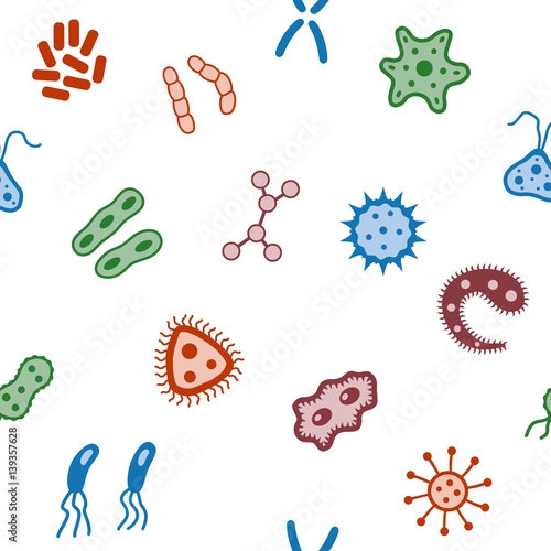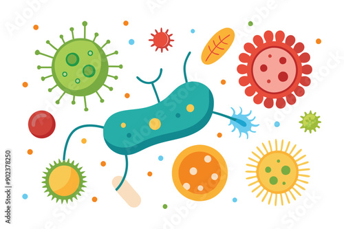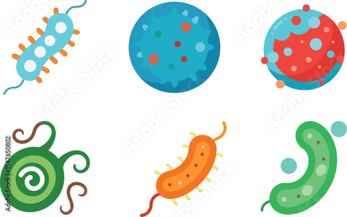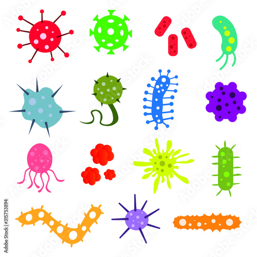 Bacteria, microorganism and virus cells isolated on white background. Vector Illustration.
