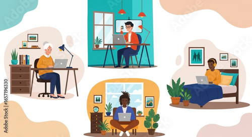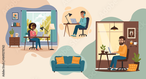 Bad dog and puppy behavior problem vector illustration. Naughty pet in dirty messy room with damaged furniture and frustrated upset man woman owner characters