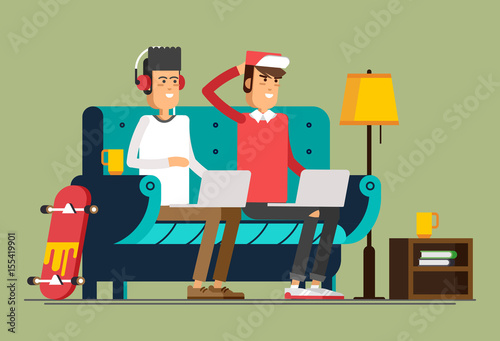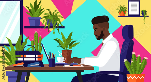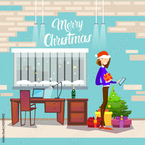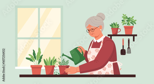 Vector illustration of confectioner holding plate with slice of cake. Coffee house, bakery or candy store interior. Baker flat style design element.