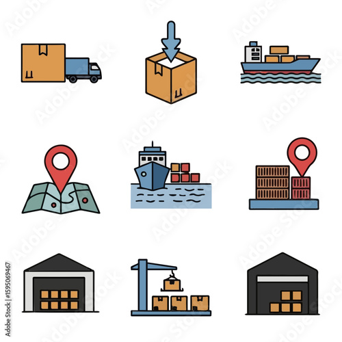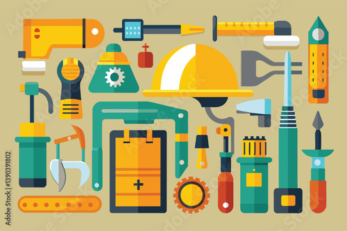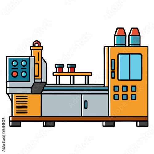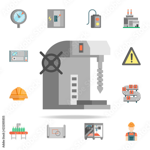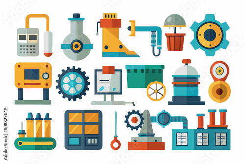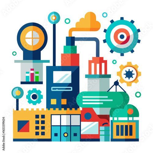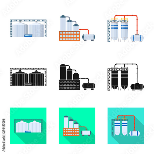Bakery factory concept vector flat illustration. Bread making process flowchart used in industrial bakery. Three steps of bread manufacturing from flour grinding to baked fresh bread loaves.
