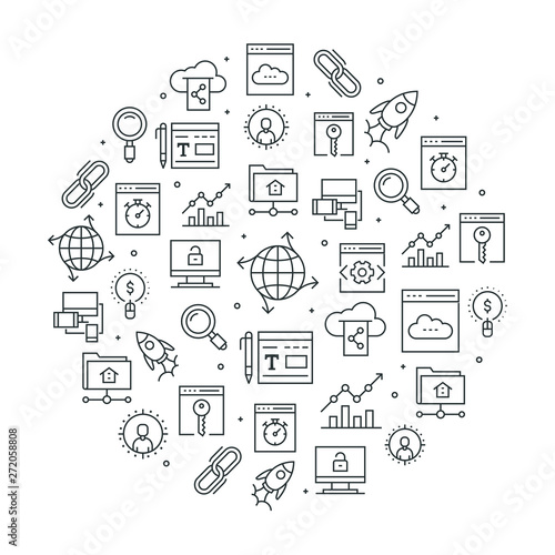 Banking concept vector illustration. Modern thin line art flat style design element in the shape of bank building with banking symbols, icons for website banners and printed materials.