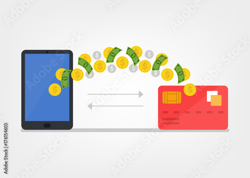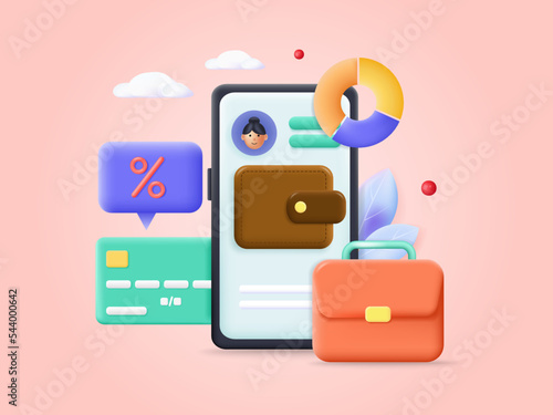Bank online vector. Digital money payment service illustration. Phone finance app technology. Financial transfer and business on internet. Mobile banking account on smartphone 3d design