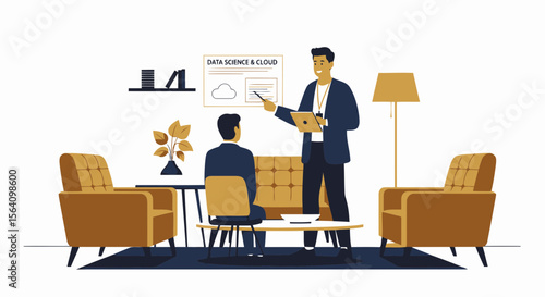 Vector illustration of bank personal manager female and customer male. Bank people concept flat style design elements, icons isolated on white background.
