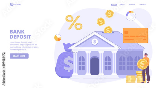 Bank service vector. Business and finance illustration. Money, budget and financial analysis concept. Commercial payment, credit, investment dividends and savings scene