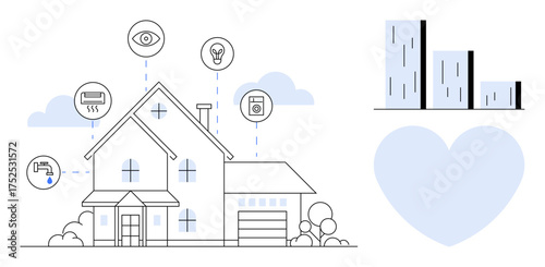 Bank concept vector illustration. Modern thin line art flat style design element with banking symbols, icons for website banners and printed materials.