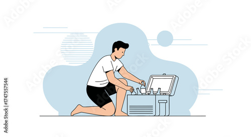 Bankrupt man with loan debts sitting at table vector icon vector icon isolated on white background
