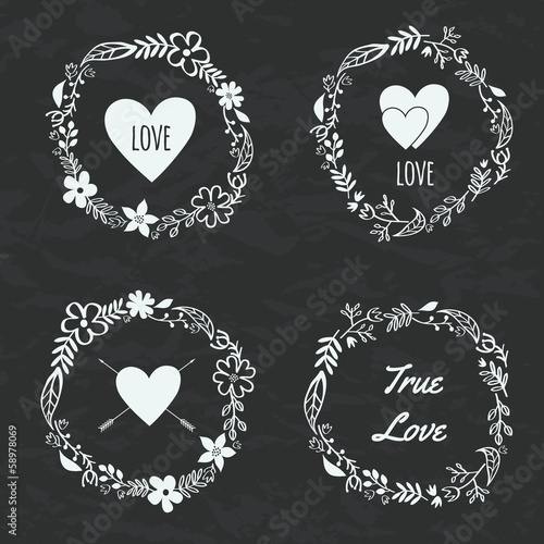 Vintage chalkboard bbq flyer design templates. Vector realistic top view plate with knife and fork and ink hand drawn barbeque food meat, spices, herbs.