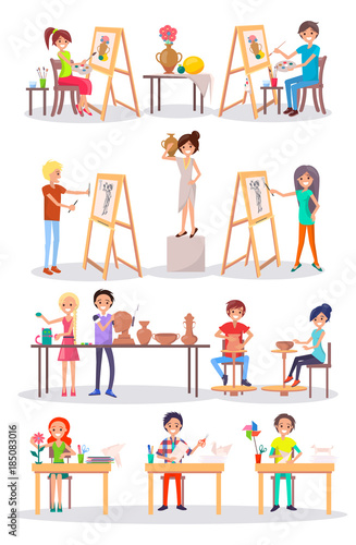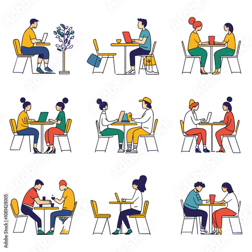 Barbecue people icon set. Vector flat illustration of people men women, families, friends making BBQ, cooking on grill and eating grilled meat, sausages, drinking beer isolated on white background.